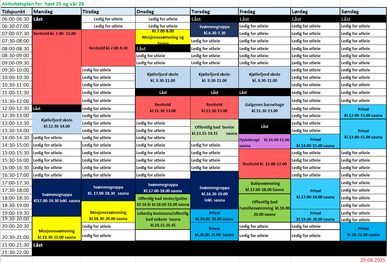 Kjøllefjord svømmehall er åpent i perioden fra 18.august til 19.desember, og fra 2. januar til 30.juni.